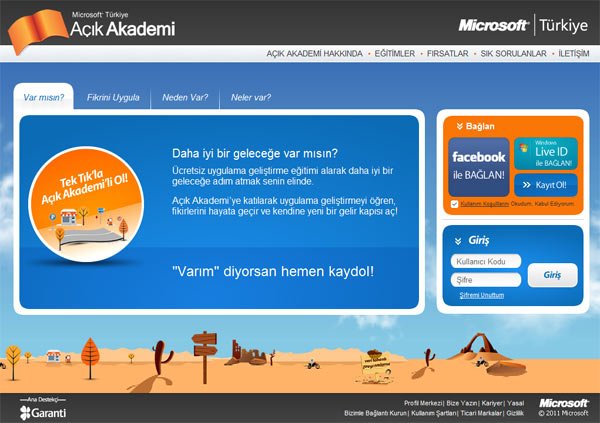 Microsoft Türkiye’nin öncülüğünde, Garanti Bankası’nın desteği ve Ulaştırma, Denizcilik ve Haberleşme Bakanlığı’nın katkılarıyla Türkiye’nin ilk herkese açık, ücretsiz uygulama geliştirme okulu Açık Akademi açıldı. Girişimci ekonomisi oluşturulmasına öncülük edecek bu kurumsal sosyal sorumluluk projesi, Türkiye’ye milyarlarca dolarlık uygulama pazarının kapılarını aralıyor.