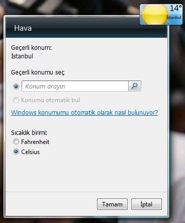 Bugün Windows Vista çıktığında çok popüler olan ama uzun süredir kullanmadığım, masaüstü araçlarını hava durumunu masaüstümde görebilme isteğiyle tekrar aktif hale getirdim.